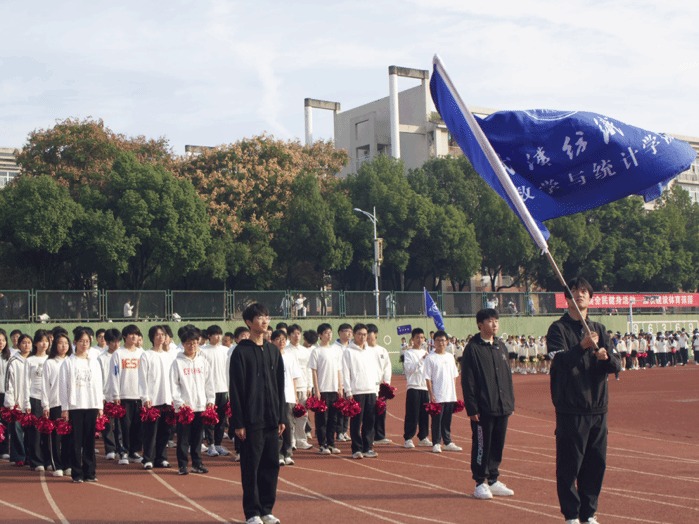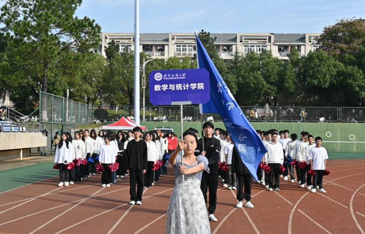 随着各方阵入场,校运动会拉开了序幕。开幕式中,数学与统计学院的师生们身着统一服装,昂首跨步,他们以挺拔的姿态、饱满的精神,展现出数统人严谨务实、锐意进取的精神风貌。