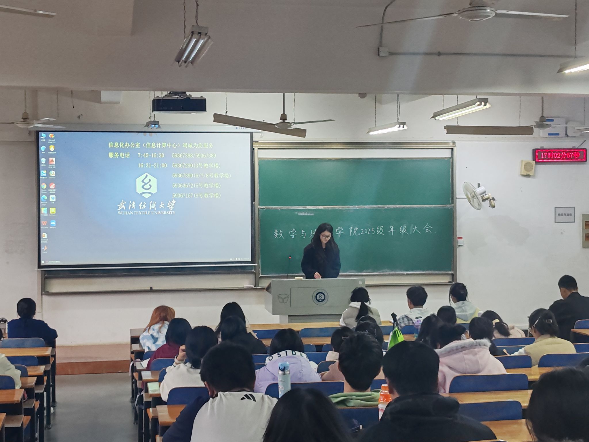 为整顿学风、强化纪律意识、共建平安和谐校园,2025年11月23日,数学与统计学院25级学生、辅导员曾琦在76net必赢官网03-118教室隆重召开了本学期年级大会。本次大会由年级兼职辅导员孙海琴老师主持,全体同学参会。
