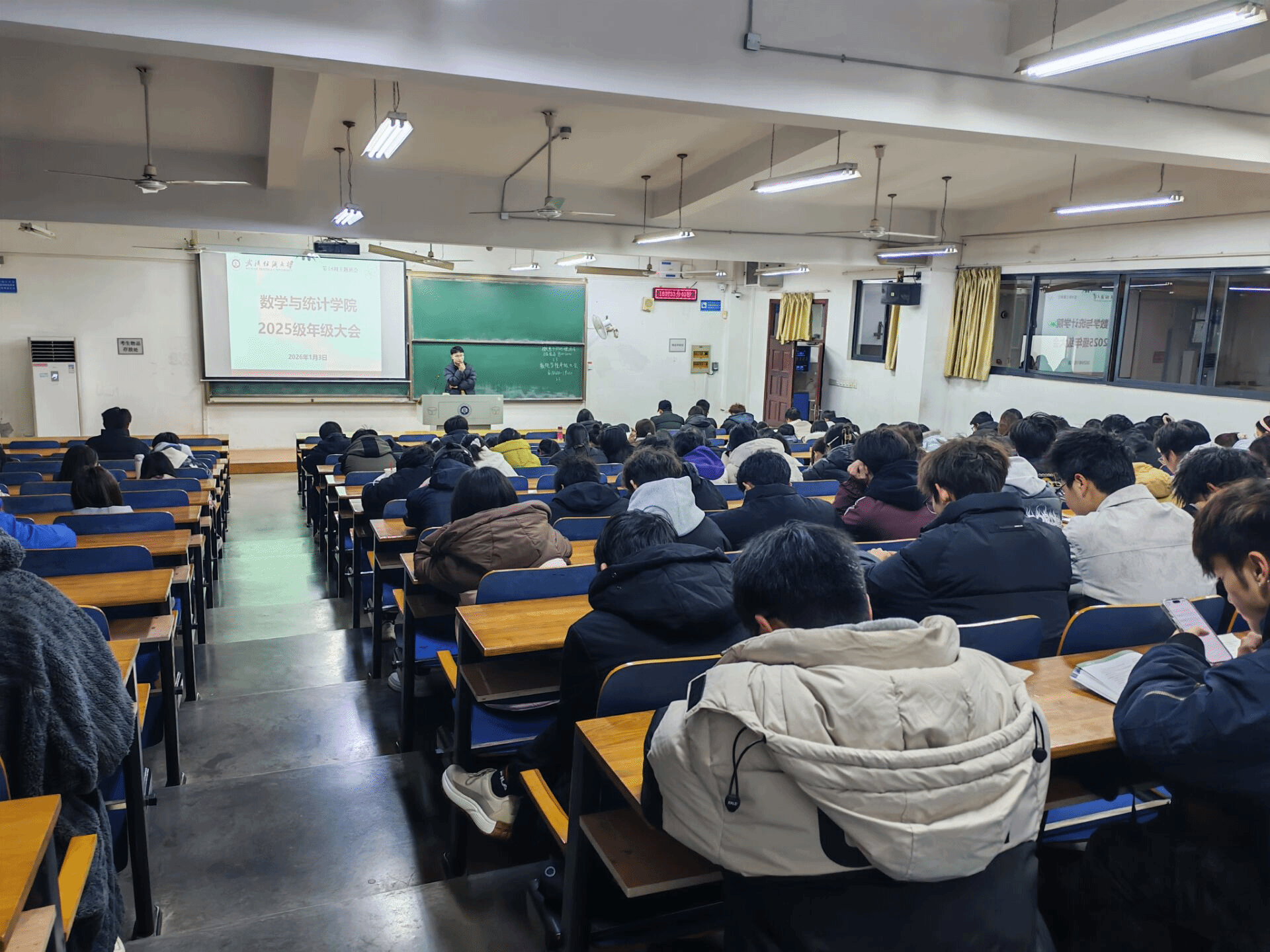 为严明考风考纪,筑牢诚信防线,引导同学们以端正态度备战期末,用真实成绩检验学习成效,1月3日,数学与统计学院召开2025级诚信考试主题年级大会,全体2025级学生参会,会议围绕期末备考、考风考纪、诚信立德三大核心展开,辅导员曾琦主持此次会议。
