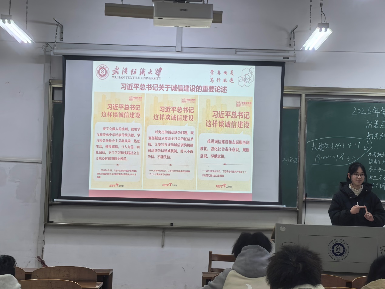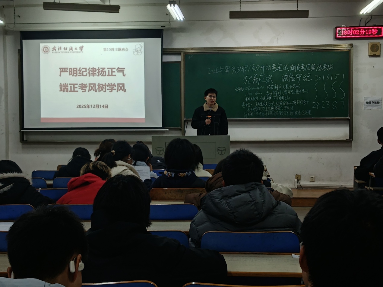 为强化学生诚信应考意识,筑牢学风建设根基,1214日,数学与统计学院组织各班级开展第十五周“诺守诚信考风 践行守信之德”主题班会,为即将到来的期末考试保驾护航。数学与统计学院全体同学参加,班会由各班班长主持。