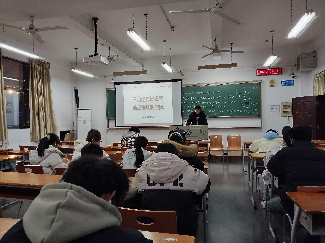 班会伊始,班长介绍,考风考纪是校园文明的重要体现,考场诚信是学生的立身之本。班会上,班主任们结合近年来典型的考试作弊案例,详细解读了《学生考试违纪处分规定》,深入剖析了作弊行为对个人学业、信誉及校园风气的危害。分数诚可贵,诚信价更高,老师们强调,真实的成绩是对自身学习的检验,更是对诚信品质的践行。同学们纷纷表示,将严格遵守考场规则,自觉抵制作弊行为,以诚信应考守护校园的公平正义,用实际行动维护良好的考风考纪。
