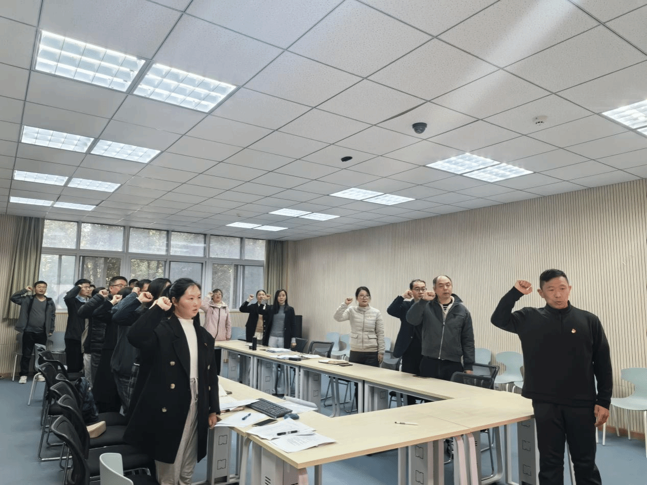 全体党员面向党旗,重温入党誓词,李楠领誓。