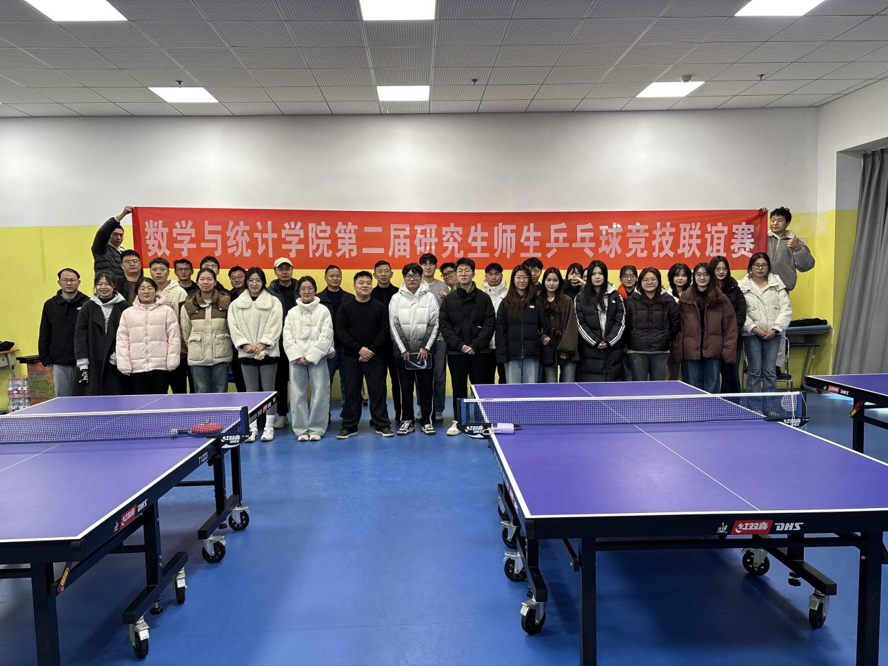 2025年12 月 4 日,数学与统计学院第二届研究生乒乓球师生联谊赛在体育馆乒乓球场举行。学院党委书记李楠、党委副书记陈国鹏出席活动,学院部分教师与研究生踊跃参赛。