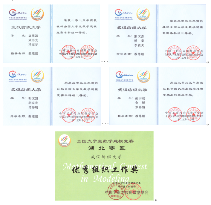 2025年全国大学生数学建模竞赛全国奖及2025年全国大学生数学建模竞赛湖北赛区获奖名单相继揭晓,我校学子表现优异,实现了本科生全国一等奖的突破。