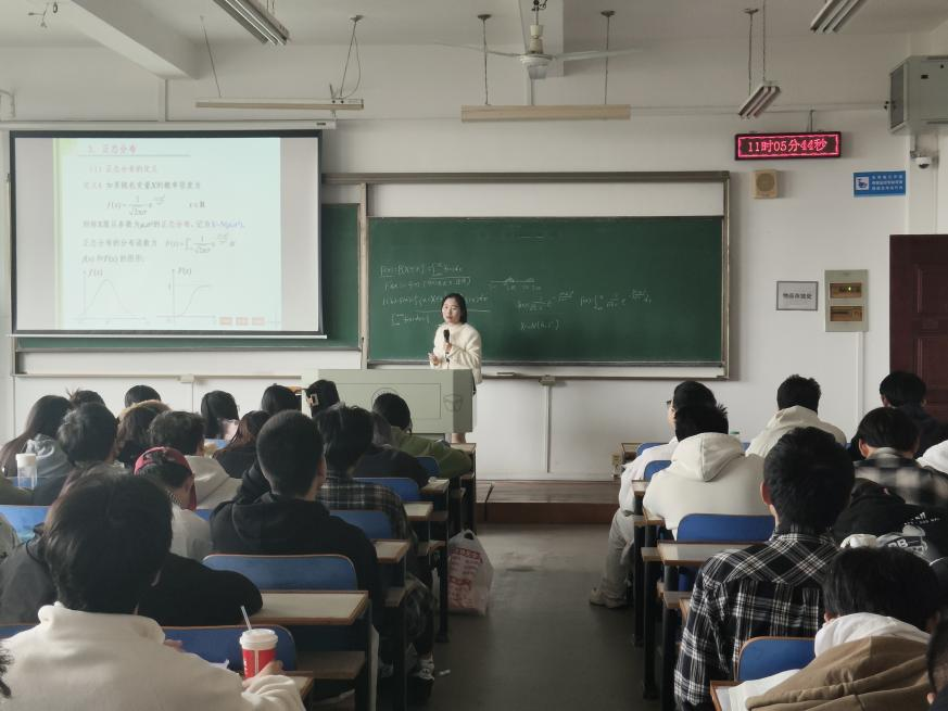 课堂上,朱丽梅老师以《概率论与数理统计》课程中“连续性随机变量及其分布”为核心教学内容,凭借清晰的逻辑架构、生动的案例解析,为在场师生呈现了一堂兼具专业性与趣味性的示范课。课程导入环节,朱老师并未直接切入理论知识,而是结合生活中的实际场景提问:“超市结账时的等待时间、手机电池的续航时长,这些连续变化的随机现象该如何用数学方法描述?”通过贴近生活的问题引发学生思考,自然过渡到“连续性随机变量”的概念,快速激活学生的知识储备与学习兴趣。